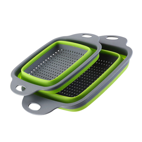 2 ชุดครัวพลาสติกอ่างล้างหน้าท่อระบายน้ำผักผลไม้ตะกร้าซิลิโคน