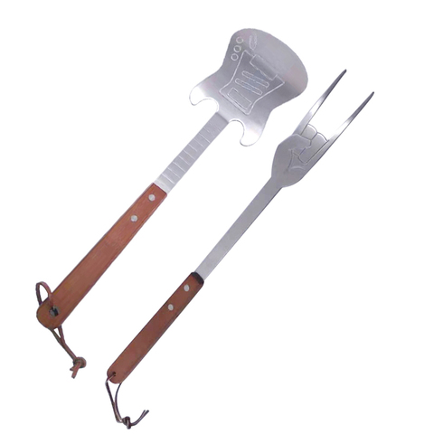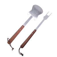 บาร์บีคิวเครื่องมือเครื่องใช้ในครัวสแตนเลสบาร์บีคิวส้อมและพลั่วที่มีด้ามไม้